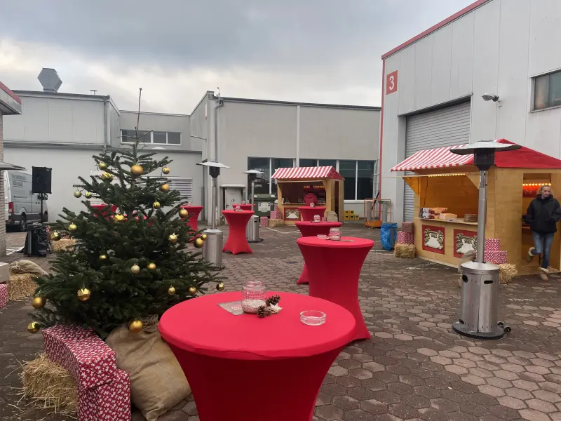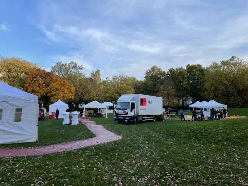 Auffällig und Bunt. Ein Anbieter, der auf sich aufmerksam machen will. Ein Eyecatcher auf der Veranstaltung. (1 Stimme)